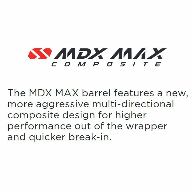 - The MDX MAX barrel features a new, more aggressive multi-directional composite design for higher performance out of the wrapper and quicker break-in.