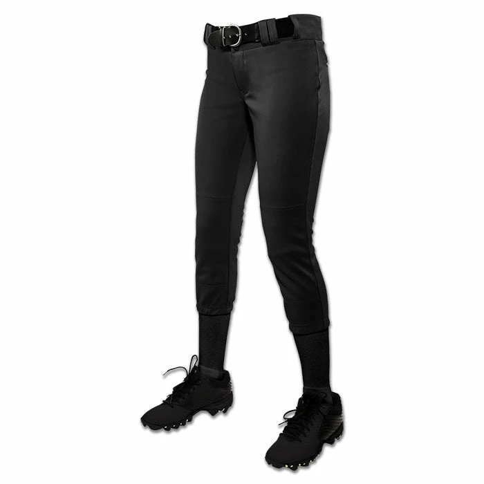 - Traditional style, low-rise pant finished with tapered leg pattern and elastic leg openings