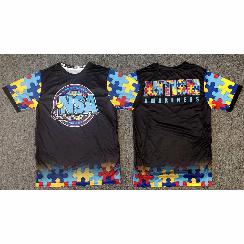 Show your support for Autism Awareness with this National Softball Association Full Dye Sublimation Short Sleeve Shirt.