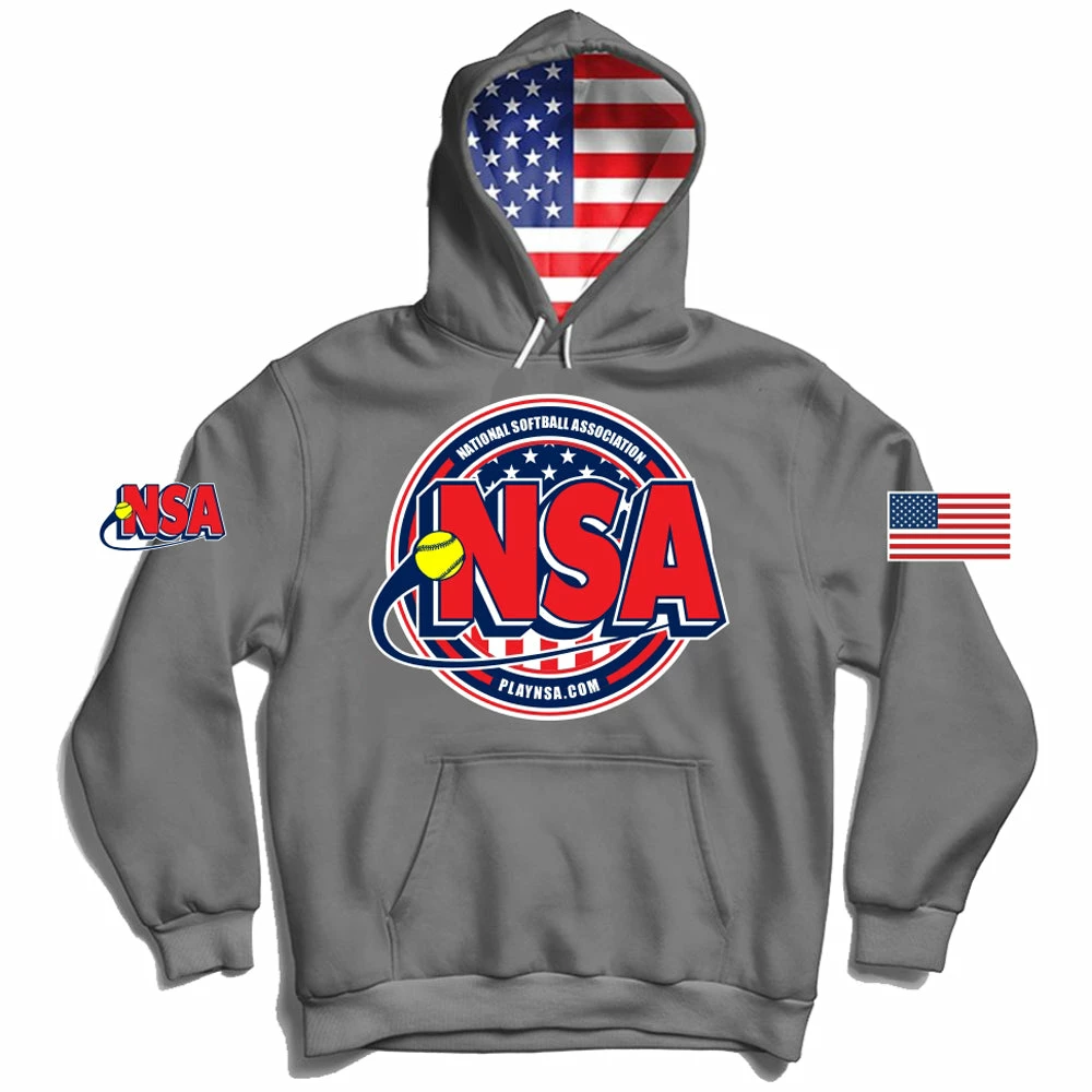 Represent the National Softball Association and the Country with this Patriotic Full Dye Sublimation Hoodie!