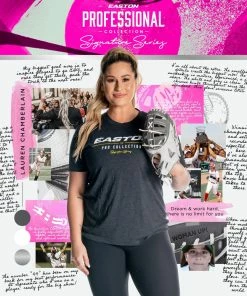 The all-new Professional Collection Signature Series, designed in collaboration with Jen Schroeder, Morgan Stuart, Lauren Chamberlain and Haylie McCleney, is Easton’s latest addition to the fastest-growing Fastpitch softball glove line in the game. Each model has several unique position-specific features, and was designed to match the style, flare and passion these athletes bring to the game of softball every day. The Signature Series is handcrafted with Premium Reserve™ USA steer hide leather and pro-grade rawhide lace. A full leather lining, binding and welting provide a durable shape and a faster break-in time. Each model features a laceless lining, an Ax® Suede back-of-wrist liner and an adjustable fit system, making the Professional Collection Signature Series the most comfortable gloves in the game.