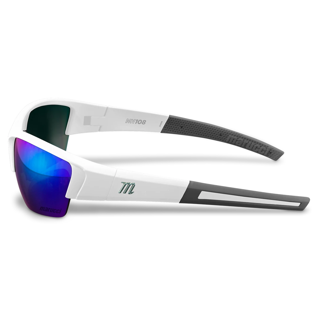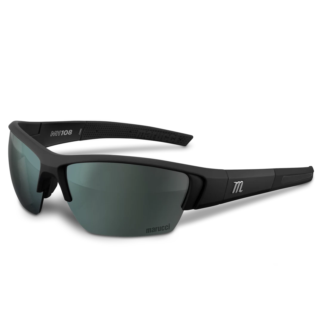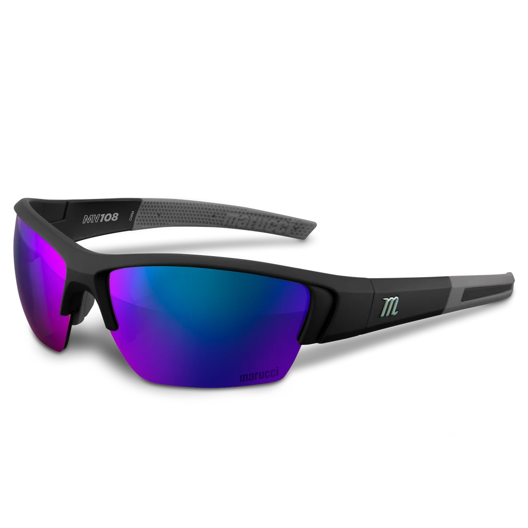 Marucci MV108 performance sunglasses are made specifically for on-field use with lenses produced by Carl Zeiss Vision, engineered to enhance clarity, improve visibility, and balance color perception to create higher performing on-field sunglasses.