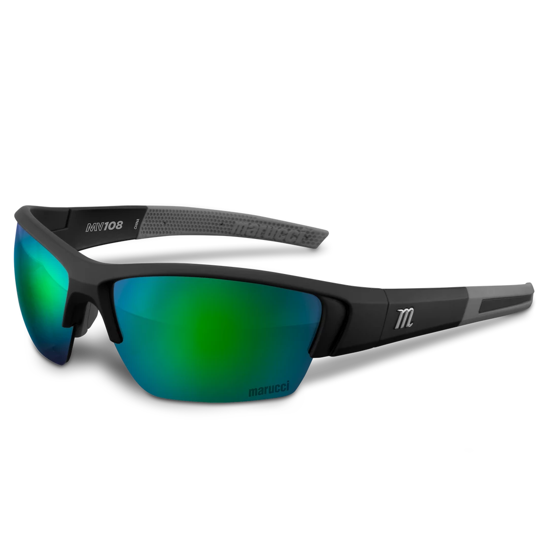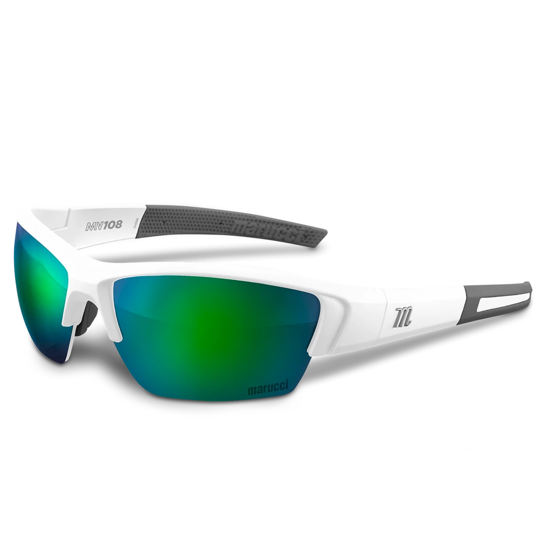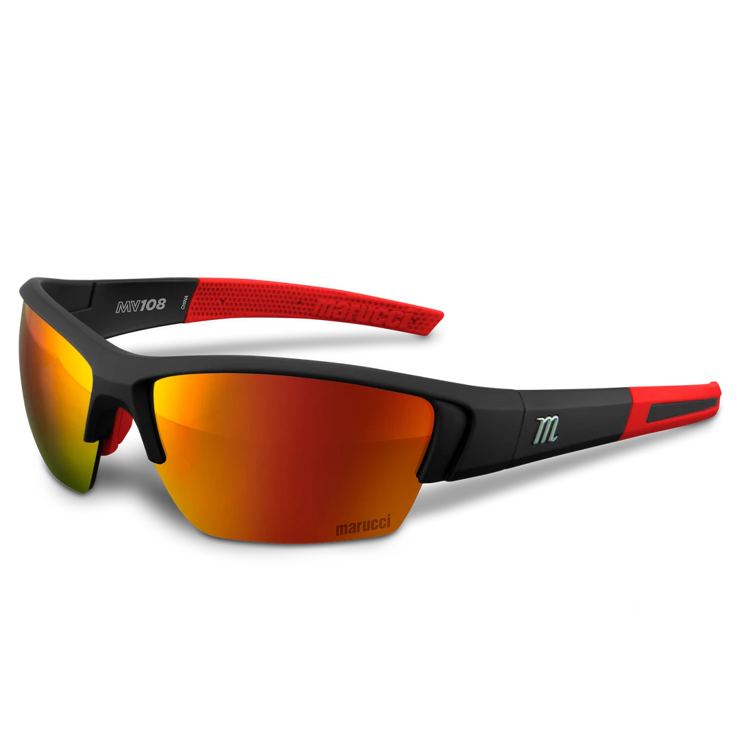 Marucci MV108 performance sunglasses are made specifically for on-field use with lenses produced by Carl Zeiss Vision, engineered to enhance clarity, improve visibility, and balance color perception to create higher performing on-field sunglasses.