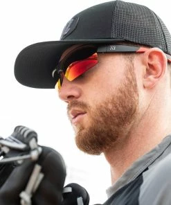- Sunglasses fit comfortably underneath hat brim during play and securely on top the bill as conditions change