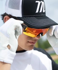 Marucci Shield performance sunglasses are made specifically for on-field use with lenses produced by Carl Zeiss Vision, engineered to enhance clarity, improve visibility, and balance color perception to create higher performing on-field sunglasses. The Shield’s single-lens design allows for full range of view on the field and includes additional interchangeable lens for easy personalization.