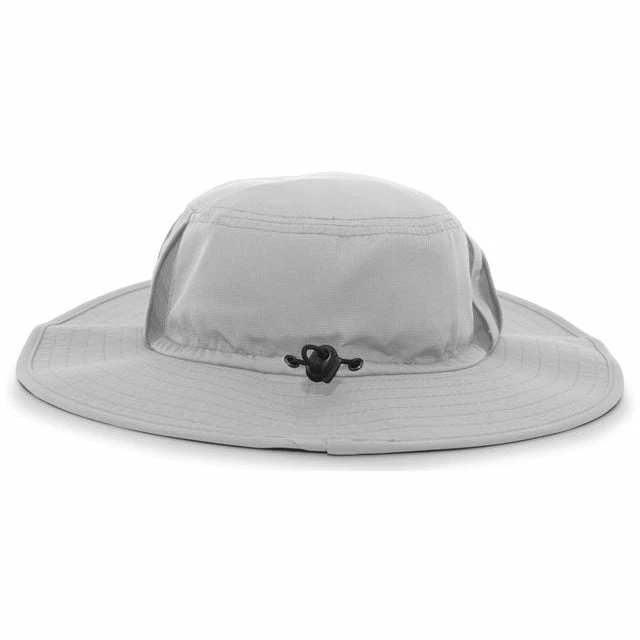 - KEY FEATURES: 100% polyester | Breathable Vented Sides | Sun protection | Wicks moisture | 3-inch wide brim | Drawcord adjustable