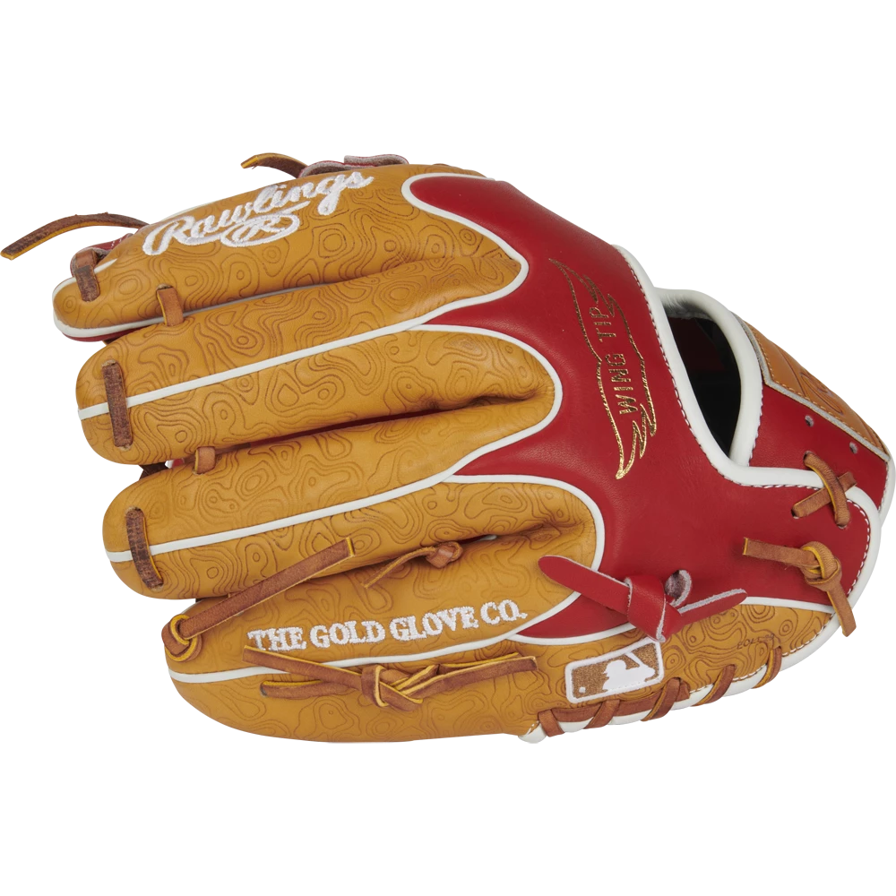 This 11.5-inch infield glove is like nothing else in the field: the “geoprint” topographical features stamped into the leather are an artful touch that give this limited-edition gamer a truly gorgeous look. The Heart of the Hide leather and 200 pattern give you the same performance that big leaguers have trusted for decades. For added style, we also added a cherry-red Wing-Tip design and special cross-designed web.