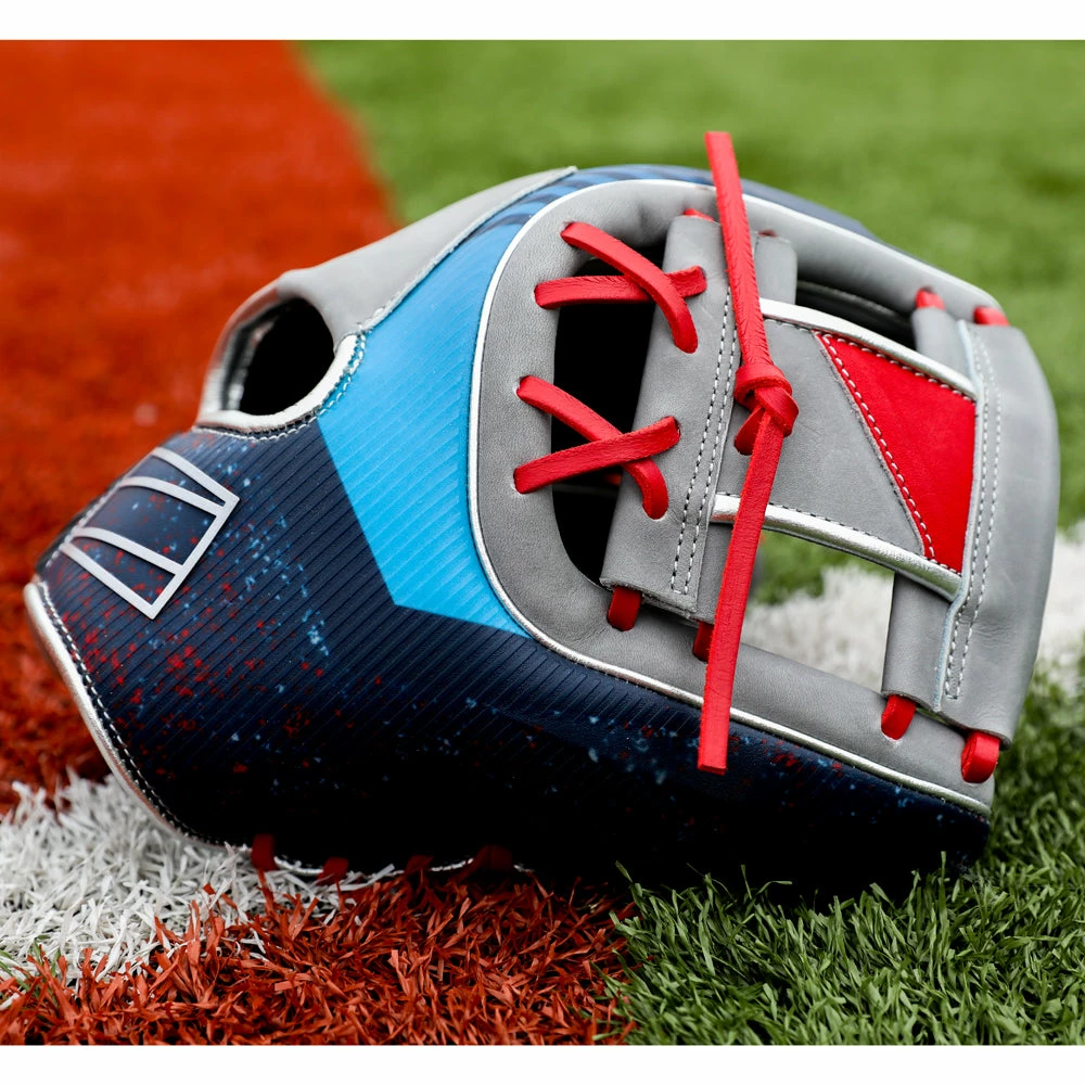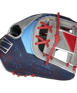 In addition, we’ve crafted our REV1X series gloves with a multi-layer back too. Each model even has its own molded, 3D-sublimated design. The 11.5-inch REV1X glove is equipped with a stylish gray, red & blue color-way with an extremely eye-catching sublimated graphic that is sure to turn heads on the field. The revolutionary lace-less I-web and heel will also help you stand out. This innovative new feature allows you to have a completely consistent feel, to make sure you’re snagging everything hit your way. And with the ultra-premium ‘HOH’ leather in all the right places, these REV1X gloves boast the same professional quality break-in & performance you expect from Rawlings.