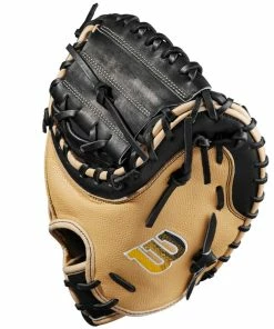 Ideal for advanced catchers looking to further their receiving and blocking technique, the A2000® 1790SS baseball catcher’s mitt pairs its Black Pro Stock® leather palm with Blonde SuperSkin™ to maximize feel and control behind the dish. The SuperSkin back on this 34” mitt reduces overall weight and repels moisture, and gradient Bold Logos enhance the modern look. Designed with an extended palm, wide Half Moon web and stiff thumb, this larger catcher’s mitt helps to reduce rebound when blocking balls in the dirt.
