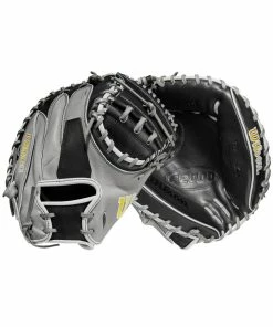 A backstopโs companion behind the dish, the A2000ยฎ M2 catcherโs mitt includes integrated thumb protection to help players through the grind of countless pitches in the bullpen or on the field. This 33.5โ catcherโs mitt offers the size required to block balls in the dirt while still empowering catchers with the control to frame pitches on the edge of the strike zone. Black and Grey Pro Stockยฎ leather delivers the unmatched feel and relentless durability required behind home plate, and new gradient Bold Logos in Yellow and White bring a modern look to A2000.