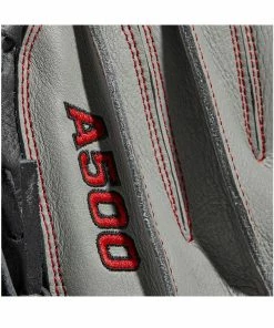The 32” A500 baseball catcher’s mitt, ideal for youth ballplayers learning to receive and block behind home plate, features Closed One-Piece Web to corral the ball. A smaller hand opening and Velcro wrist strap helps create a secure fit for catchers, and the all-leather construction offers a sturdy and lightweight feel with Grey and Black Top Grain leather. Engineered for youth players, the A500 catcher’s mitt boasts an adjustable wrist closure for easy in-game adjustments and steady control of the glove.